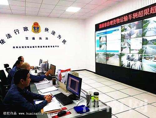 10月10日下午,淮河早報、淮南網記者來到了田家庵國慶西路的市治超“非現場執法”處理中心。在治理貨物運輸車輛超限超載信息平臺的監控大廳,只見碩大的顯示屏占了一面墻,上面顯示著全市主要干道及重要貨源點的37個自動稱重監測及電子抓拍的卡點。五名工作人員坐在桌前,一邊查看桌子上的電腦,一邊監視大墻上的畫面,隨時掌握系統警示的超限超載貨運車輛的動態信息。