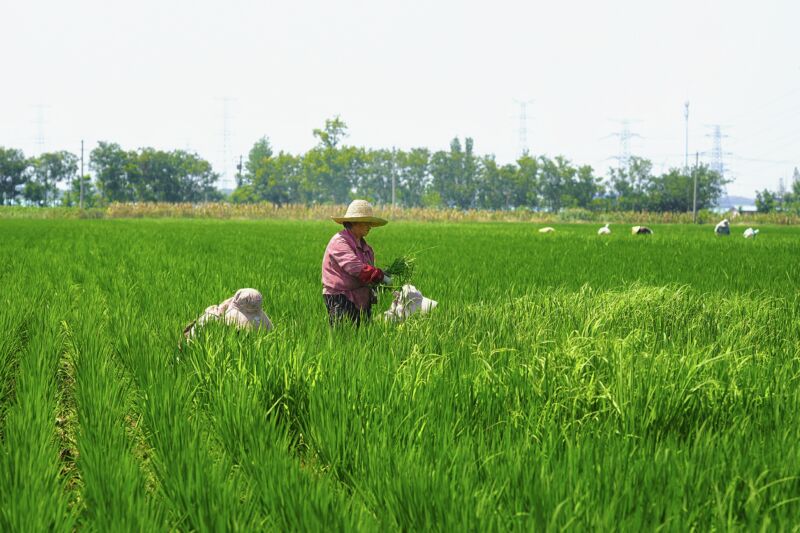 當前正值水稻生長旺季,安徽農墾淮南農場持續聘請人工除草隊對良種水稻進行除草作業,消除稗草等有害雜草,有效避免了藥劑使用,保障水稻品質,促進生態環保。
