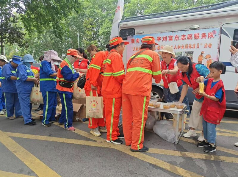 8月5日至7日,市紅十字會劉富東志愿服務(wù)隊(duì)連續(xù)三天走上街頭,開展“送清涼”活動,為田家庵區(qū)和大通區(qū)300多名環(huán)衛(wèi)工人、公廁保潔員送去總價(jià)值5000元的清涼物資。此次活動是該服務(wù)隊(duì)自今年6月下旬高溫以來持續(xù)開展的“酷暑送清涼”系列活動的延續(xù)。