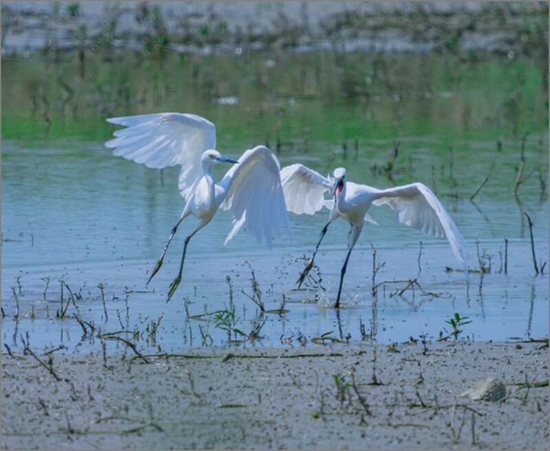在淮南高新區馬廠水庫,數只白鷺在水面上輕盈飛舞。它們舒展著潔白的羽翼,時而振翅掠過水面,時而追逐嬉戲,靈動優雅的身姿宛如精靈,為夏日增添無限生機。