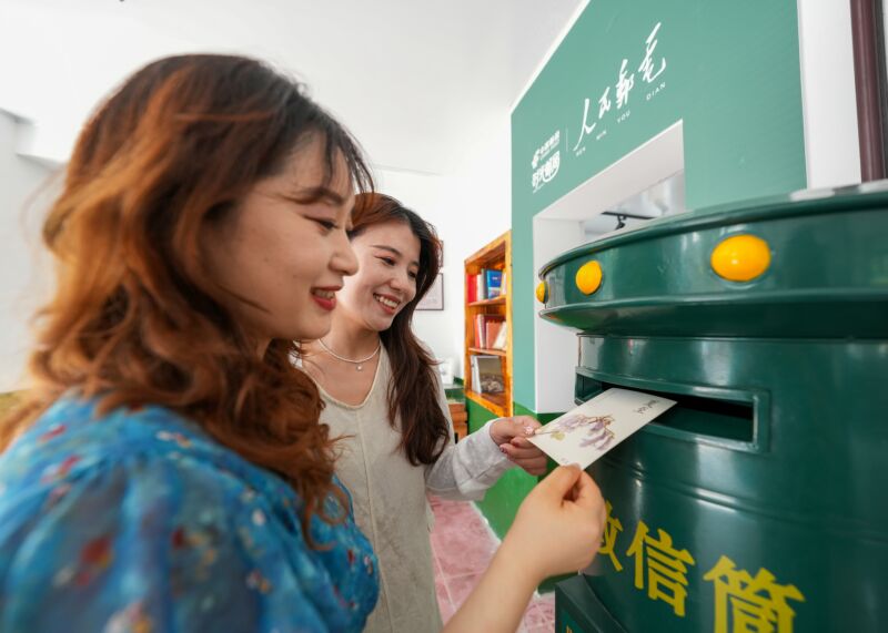 為提升區域文化旅游的知名度和吸引力,田家庵區深入挖掘本土歷史文化資源,秉持保護與開發并舉的理念,著力打造淮河老街1952項目,通過修復歷史建筑、融入懷舊元素與現代業態,再現老淮南工業記憶與市井風情。漫步老街,游客既能感受老淮南工業記憶的厚重,又能體驗市井風情的鮮活。圖為游客在時光郵局投出自己寫下的明信片。