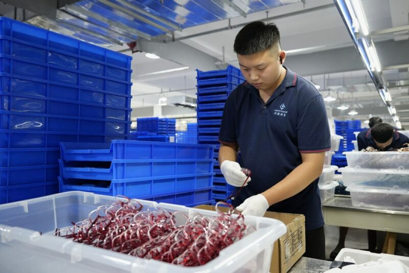 淮南市利豪眼鏡有限公司車間工人忙著對新下線的眼鏡進(jìn)行檢驗(yàn)裝箱,該企業(yè)月產(chǎn)老花鏡等眼鏡130萬副左右,產(chǎn)品遠(yuǎn)銷歐美。當(dāng)前,企業(yè)生產(chǎn)一線熱火朝天,工人們正趕制新一批訂單。