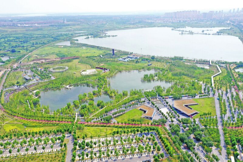 圖為:生態修復治理后的采煤沉陷區,建設春申湖公園,滿足市民休閑需求。