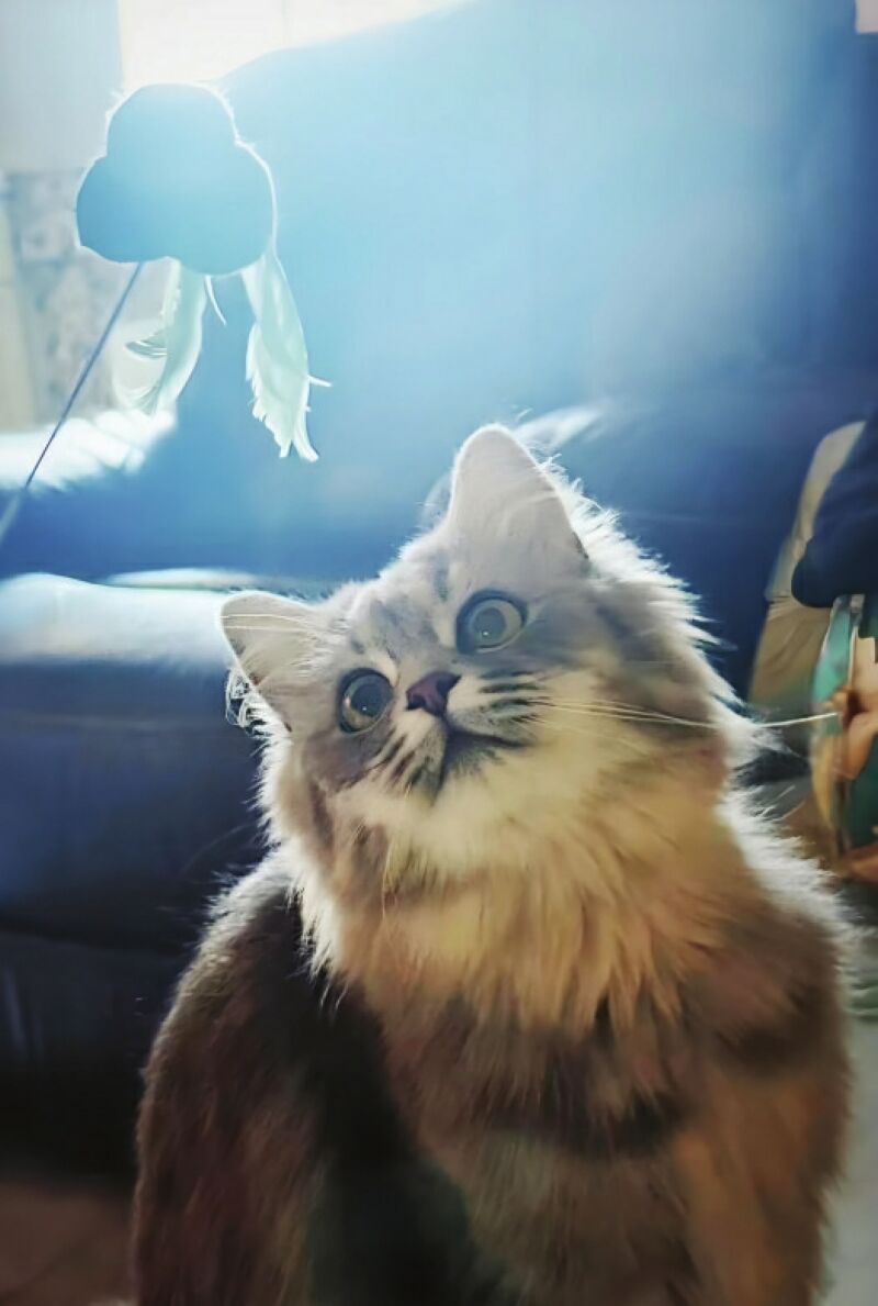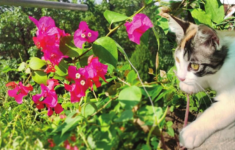 鏡頭下,甜美可愛的貓貓時而在地上愜意打滾,絨毛沾著細碎的光斑;時而敏捷地攀爬上主人的膝蓋,昂首挺胸的模樣神氣活現;時而嗅聞鮮花,炯炯有神的眼睛好奇地看向整個世界。它活潑好動,一刻也停不下來……每一個動作都盡顯喵星人的嬌憨與靈動。