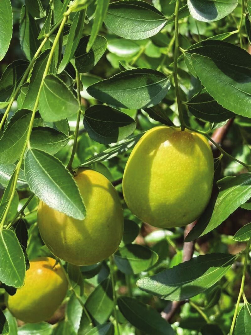 走進林地,只見綠葉層疊、青翠欲滴,一顆顆飽滿瑩潤的青棗如翡翠般綴滿枝頭。它們或三兩簇擁,或獨自低垂,將枝條壓出豐碩的弧度。微風拂過,林間仿佛已飄起若有似無的棗香,預告著一場甜蜜豐收的臨近。