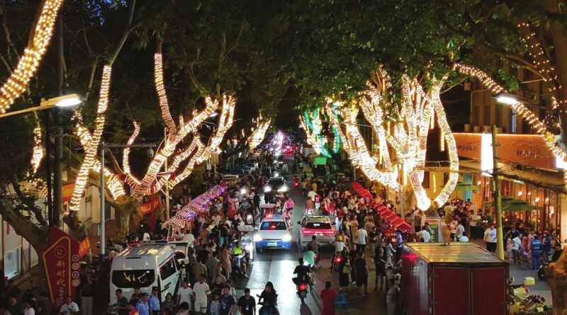 為創(chuàng)新活動(dòng)形式,現(xiàn)場(chǎng)還設(shè)置了如懷舊小賣(mài)部等“時(shí)光打卡點(diǎn)”以及非遺集市,吸引了眾多市民前往觀賞;春永辖1952作為田家庵區(qū)重點(diǎn)改造的歷史街區(qū),近年來(lái)通過(guò)“修舊如舊”重現(xiàn)百年風(fēng)貌。紅旗照相館、梧桐樹(shù)亮化工程等元素與活動(dòng)布景巧妙融合,讓市民在觀影間隙漫步燈光步道,感受“老建筑里的新淮南”。