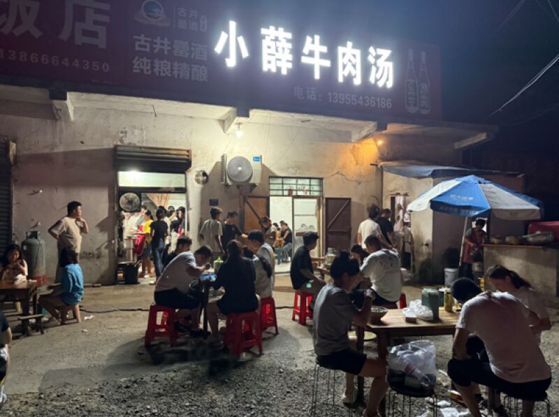 近日凌晨,記者循著夜色探訪這家小店。不大的兩間店面,一間是煙火繚繞的操作間,一間是擺放著幾張簡易桌子的用餐區(qū)。盡管已是深夜,這里卻座無虛席,桌旁坐著剛下夜班的工人、熬夜加班的上班族、代駕司機(jī),甚至還有遠(yuǎn)道而來的外地游客。店外,食客們自覺地排著長隊(duì),等待著那一碗讓人念念不忘的牛肉湯。