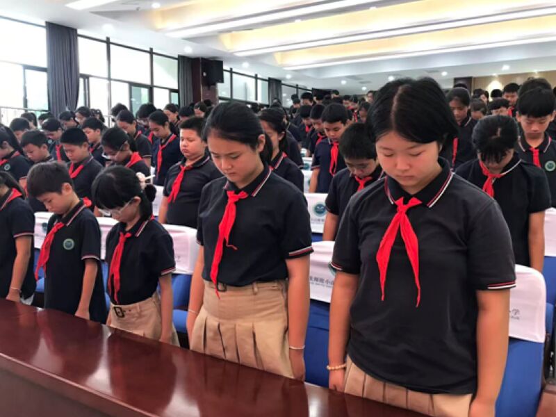 活動由初中部學生主持,伴隨著旋律,全體師生肅立,齊聲奏唱國歌,嘹亮的歌聲傳遞著對祖國的熱愛。緊接著,全體師生為在九一八事變中遇難的同胞默哀3分鐘。隨后,小學部學生代表發表國旗下講話,表達了
