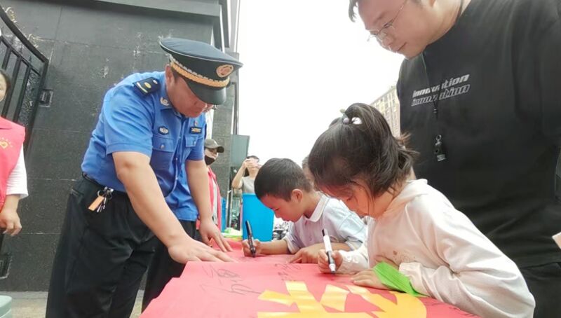 最有趣的環(huán)節(jié)是“簽名承諾”。一條印有“垃圾分分類,資源不浪費”的紅色條幅鋪展開來,孩子們用彩色畫筆鄭重地簽下自己的名字。歪歪扭扭的字跡背后,是一顆顆從小踐行環(huán)保的決心。