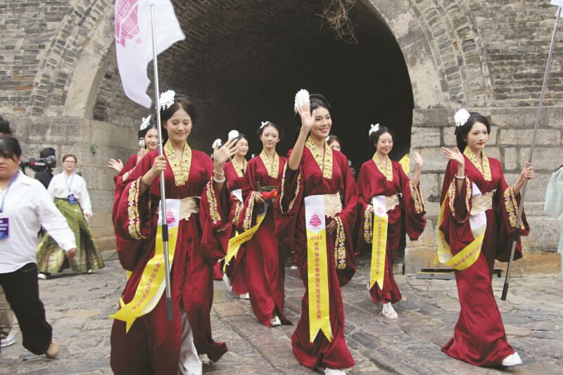 古城因美麗而靈動,美麗因古城而厚重。9月20日,2025世界旅游小姐中國年度冠軍總決賽入城儀式在壽州古城賓陽門隆重舉行。86名佳麗身著戰國袍,在現場燃放的絢麗彩煙中,從古城賓陽門入城,登上古城墻,用青春的腳步丈量歷史,用燦爛的笑容為壽州古城旅游代言。當天,佳麗們還在“向世界推廣壽縣”代言板上鄭重簽名,通過她們的美麗身影,讓更多的人了解壽縣、走進壽縣、愛上壽縣。應邀參加入城儀式的國家文化旅游部原綜合司司長、2025世界旅游小姐中國區總決賽評審委員會主任鄧宗德說:“2025世界旅游小姐中國年度冠軍總決賽入城儀式在壽州古城舉辦,使大家感受到歷史帶來的古風古韻,時尚氣息與古樸典雅相得益彰。文化是旅游的靈魂,旅游是文化的載體與延伸。相信通過此次賽事,淮南壽縣將會迎來文旅發展的新篇章,成為可記錄、可停留、可欣賞、可回味的優秀旅游目的地!