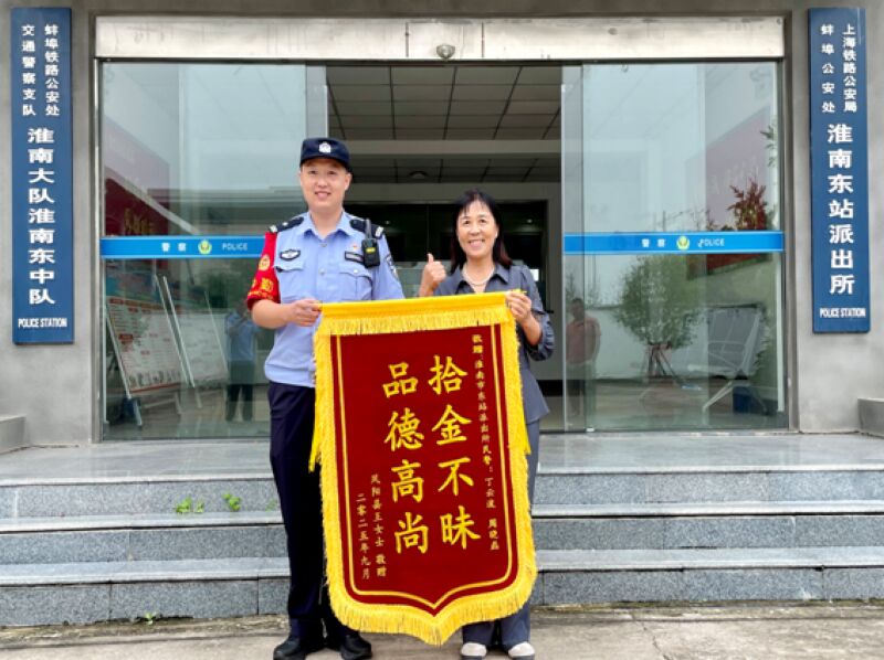 (記者 查嘉琪 攝影報(bào)道)日前,一面印著“拾金不昧品德高尚”的錦旗送到了淮南東站派出所。市民王女士專程前來(lái),向幫她找回遺失手提包的民警表達(dá)謝意。