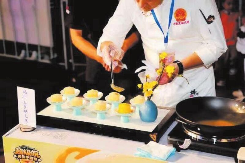比賽現(xiàn)場(chǎng)堪稱美食與文化的雙重盛宴:徽揚(yáng)酒家的“雞汁玉羅釀豆腐”,以三十年老字號(hào)功底演繹“鮮”之精髓,嫩豆腐裹著蝦仁與雞肉的鮮香,澆上滾燙雞汁瞬間香氣撲鼻;凌云山莊的“淝水之戰(zhàn)”,將淮河淝王魚與八公山豆腐同鍋燜煮,食客在品味鮮美時(shí)仿佛重溫古戰(zhàn)場(chǎng)風(fēng)云;御景宴的“蜜汁桂花排骨”甜而不膩;永益酒店的“辣炒走地雞”辣得夠味;青山園徽姑娘農(nóng)家樂(lè)的“紅燒藤箕雞”盡顯原生態(tài)食材魅力;天源樓魚館的“夾心豆腐”則把淮河鮮韻鎖于方寸之間。