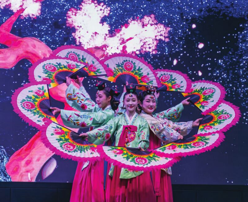 10月18日,韓國(guó)江原特別自治道藝術(shù)團(tuán)走進(jìn)淮南春申里文旅街區(qū),以藝術(shù)為橋,奏響文化交流和美樂(lè)章。韓國(guó)藝術(shù)家送上的《長(zhǎng)鼓演奏》韻律悠揚(yáng),民謠《阿里郎》情深意長(zhǎng),《花冠舞》典雅端莊,《扇子舞》翩若驚鴻;淮南的演員帶來(lái)了少兒京劇、少兒舞蹈、花鼓燈等節(jié)目,中韓兩國(guó)表演者共同為市民呈現(xiàn)了一場(chǎng)充滿韓式風(fēng)情和楚風(fēng)漢韻的視聽(tīng)盛宴。這場(chǎng)跨越山海的藝術(shù)對(duì)話,讓千年楚韻與韓流新風(fēng)在淮河之濱深情相擁,譜寫(xiě)了文明互鑒的動(dòng)人篇章。