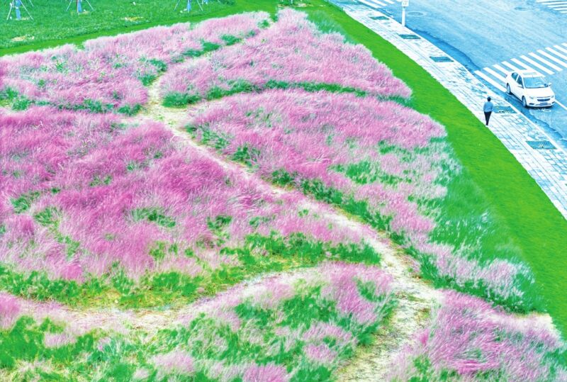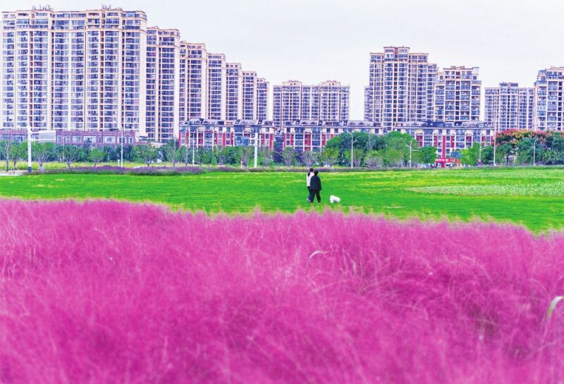 秋意漸濃,淮南高新區(qū)如意公園的粉黛亂子草綻放成一片夢幻海洋。如煙似霞的粉色花穗隨風搖曳,在公園大草坪上泛起溫柔漣漪,為城市披上浪漫濾鏡。漫步其間,齊腰的粉色云霧縈繞身側(cè),仿佛闖入莫奈的油畫世界,成為人們拍照打卡的絕佳勝地。