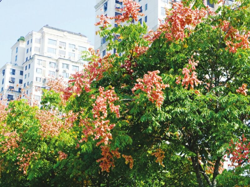 深秋,淮南城區街邊及景區公園內的欒樹變得色彩斑斕起來,濃綠的葉子間,小燈籠般的果實從淺變深、由綠轉紅,一步步繽紛了秋天的色彩。