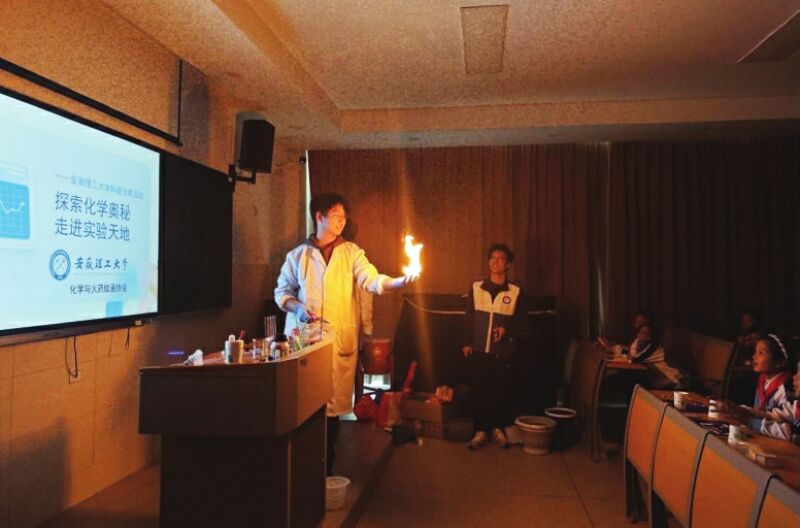 (記者 付莉榮 通訊員 王文濤 攝影報道)近日,安徽理工大學化工與爆破學院“星火”科普實踐團聯合化學與火藥紋畫協會走進安徽師范大學附屬淮南高新學校開展科普展演活動。