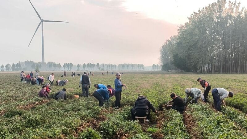 11月4日,鳳臺(tái)縣尚塘鎮(zhèn)碩博農(nóng)機(jī)合作社負(fù)責(zé)人李效龍趁晴好天氣組織社員采摘、晾曬夏花生。今年,李效龍通過調(diào)整種植結(jié)構(gòu),共種植夏季花生近千畝,經(jīng)過科學(xué)管理,畝產(chǎn)達(dá)400公斤,實(shí)現(xiàn)土地增收、農(nóng)業(yè)增效。圖為社員正在收獲花生的場(chǎng)景。
