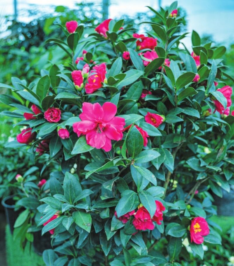 盆栽茶花養殖技巧——茶花在立冬之后持續開花,是冬季家庭盆栽的首選。盆栽茶花養殖技巧:1.土壤:按熟化紅壤土50%、木屑或食用菌渣40%、餅肥粉或牲畜糞10%的比例混合,澆水適量并發酵熟化后使用;2.光照:冬春季可接受全天日照,夏天需避免陽光直射,要將植株移到見光背陽、通風良好的環境中養護;3.溫度:茶花生長適宜溫度為18-25℃,冬季雖然耐寒,但在氣溫驟降前需將花盆移到背風向陽處安全越冬;4.濕度:茶花喜濕,春秋季每日澆水一次,夏季早晚各澆水一次,每月可澆一次0.5-1%的硫酸亞鐵水,以防土壤堿化;5.營養;根據薄肥勤施的原則,每月以腐熟枯餅水、花卉專用肥進行1-2次根外施肥,生長旺季以1-2%的植物生長素噴施葉片。