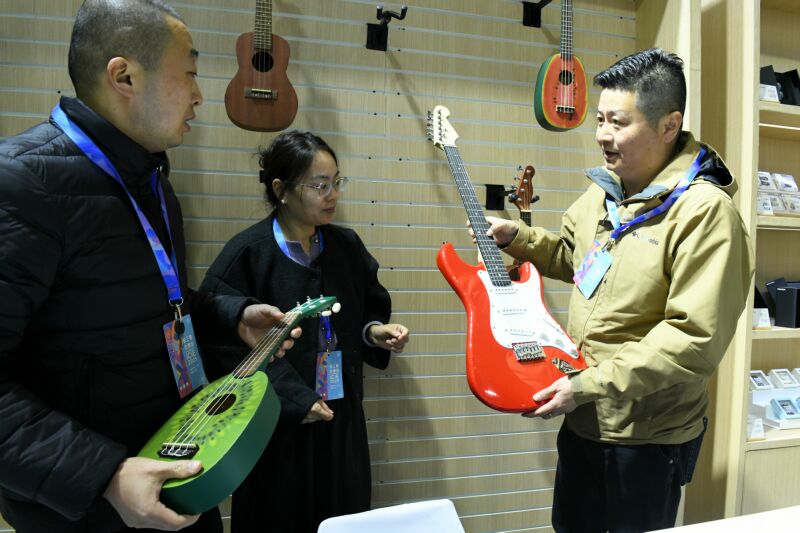 淮南樂(lè)森黑馬樂(lè)器有限公司生產(chǎn)的電吉他等樂(lè)器出口海外市場(chǎng)。