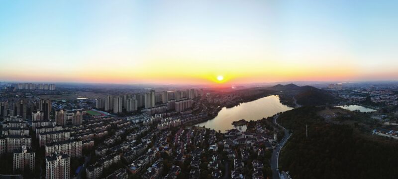 在冬日暖陽的照耀下,泉山湖畔,遠山如黛,色彩斑斕,飛鳥翩翩翱翔于天際。遠眺湖面,水光瀲滟,與蔚藍的天空交相輝映,宛如一幅自然生態畫卷。