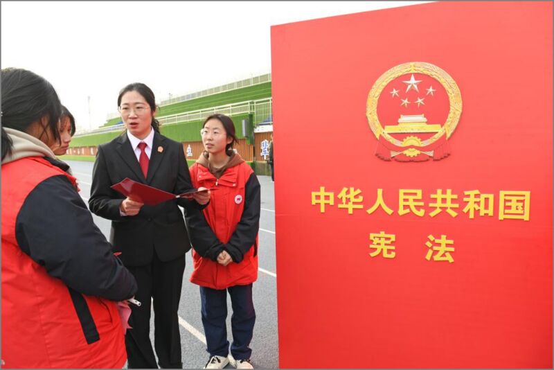 12月1日,壽縣三中60余名師生走進(jìn)壽縣人民法院,開啟“憲法之光,照耀未來”開放日之旅。學(xué)生們在訴訟服務(wù)大廳感受司法便民,在審判法庭觸摸法袍、敲響法槌,親身體驗司法的莊嚴(yán)。一場以“校園欺凌”為題材的模擬庭審,讓學(xué)生們化身審判長、代理人,在真實場景中理解“公民人格尊嚴(yán)不受侵犯”的憲法內(nèi)涵。在國徽下,全體師生齊聲誦讀憲法,將活動推向高潮,學(xué)生們清澈堅定的聲音讓法“活”了起來,法治信仰悄然萌芽。