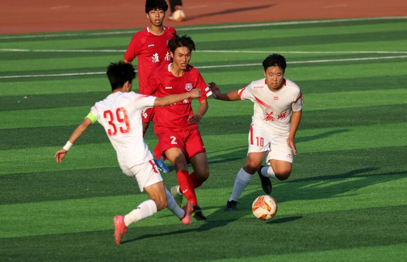 12月6日下午,安徽省青少年足球聯(lián)賽男子高中組(徽青賽)淮南隊(duì)主場對戰(zhàn)蕪湖隊(duì)。最后一輪,淮南隊(duì)將客場挑戰(zhàn)滁州隊(duì)。圖為淮南(紅衣)蕪湖(白衣)隊(duì)員激烈拼搶場景。