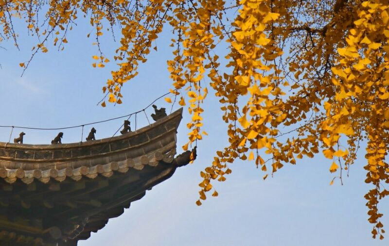 壽州古城報恩寺內的銀杏樹,據今已有1300多年歷史,歷經歲月滄桑依然枝繁葉茂。時入冬季,綠葉換上金黃外衣,微風拂過,葉片緩緩飄落,宛如一串串金色的詩行在空中搖曳,引得游客紛紛前來拍照打卡。
