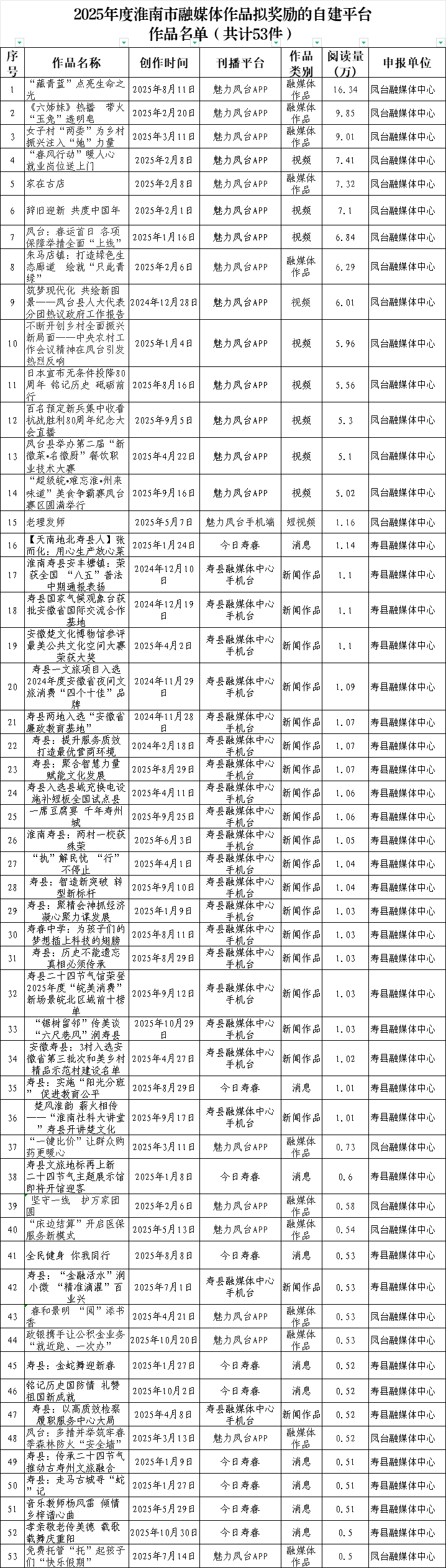 2025年度淮南市融媒體作品擬獎(jiǎng)勵(lì)的自建平臺(tái)作品名單公示