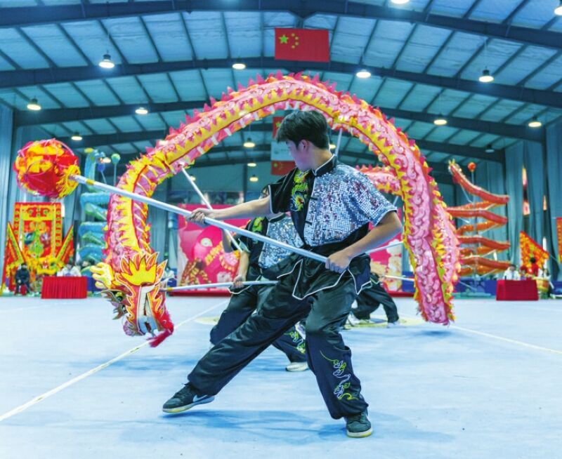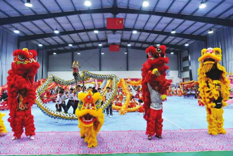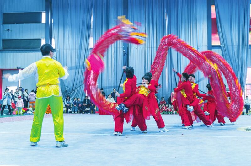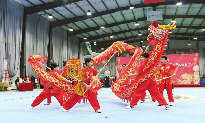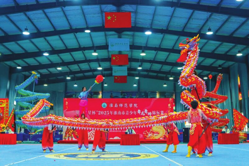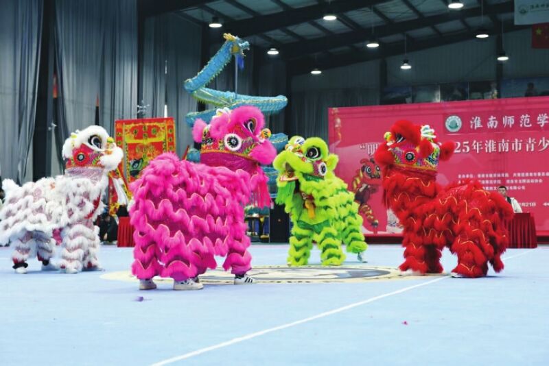12月20日下午,淮南師范學院小球館內熱鬧非凡,金黃的長龍盤旋升空,紅鬃醒獅踩點跳躍,一群又一群青少年手擎道具默契配合,一招一式剛勁靈動,贏得觀眾陣陣喝彩。