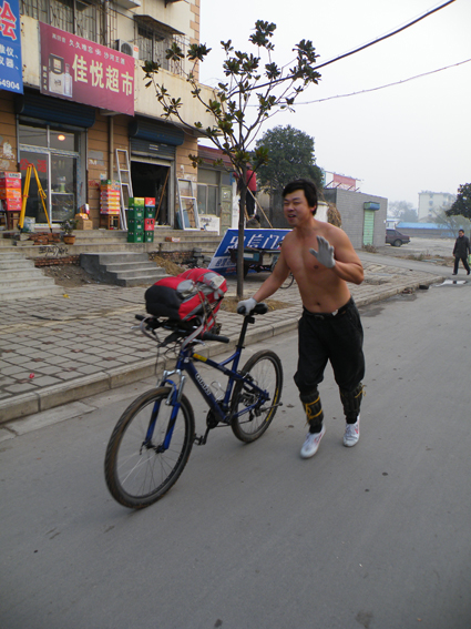 “我第一次看到他跑步的時(shí)候是在夏天,當(dāng)時(shí)我非常吃驚,他手扶著自行車身子一晃一晃地跑步,看一眼就知道他的腿部有缺陷,不敢想象他身體這樣了,還能跑得這么有勁。我當(dāng)時(shí)想他可能就是兩三天的新鮮勁,跑跑就泄氣了,然而直到今天他仍然在跑,成了我們這附近居民的偶像了。”1月3日家住鐵路新村的市民趙女士說(shuō):“因?yàn)樗椰F(xiàn)在也加入到了晨跑的隊(duì)伍。”而當(dāng)趙女士從記者這里得知,現(xiàn)在張明每天早晨都在腿上綁著十多公斤的沙袋扶著自行車不停奔跑十幾公里時(shí),趙女士驚訝地豎起大拇指,不停地說(shuō)“不可思議,不可思議。”