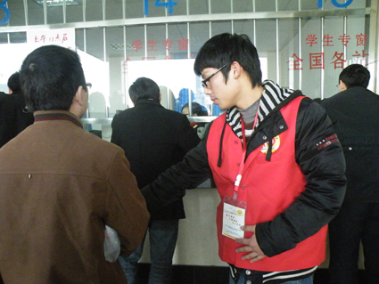 他們和全國許多城市的大學生志愿者一樣成為了中國鐵路春運史上第一批面向社會招募的青年志愿者……