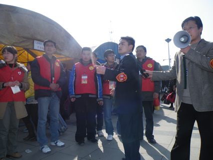 年年春運,外出的人們早已對此時火車站內的景象不再陌生;長長的乘客隊伍、車站工作人員拿著喇叭疏導乘客、還有武警和公安民警在一旁維持著秩序……今年春運,能源城的火車站里又多了道別樣的風景,他們就是服務于能源城2010年春運的大學生志愿者。“您好,乘坐前往寧波的L8450次列車的旅客請往這邊走,聽從指揮,不要擁擠,注意安全!”在春運期間,往來于淮南火車站的熙熙攘攘的旅客人流中,不時回響著他們清脆的聲音……