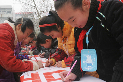 3月1日,新學期正式開課的第一天,田家庵區第十六小學舉行了一場別開生面的“向不良習慣告別、爭做好少年”簽名活動。經過了一個寒假,同學們又聚到一起,他們踴躍在橫幅上簽名,堅決告別不良習慣,爭做好少年。圖為簽名現場。