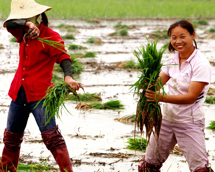 6月23日,大通區孔店鄉新街村水稻田里,近百名婦女“季節工”正在為農民插秧。農忙時節,大通區孔店鄉不少農家婦女自立自強,自發組織,當起了農村“短期季節工”,服務當地種、養殖大戶。婦女“短期季節工”每天插秧收入在50元以上。目前,這種農村“短期季節工”的服務方式在當地農村很受歡迎。