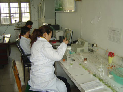 身穿白大褂的檢測員正在進行番茄農殘的快速檢測。只見他們先在番茄上取出皮和肉,放進裝有緩沖液的試管中震蕩,然后把震蕩液倒進一支大試管中并加入酶試劑;并在另一支同樣大小的試管中加入了淺黃色的對比顯示液;最后把這兩支試管一同裝進一臺檢測器中。檢測員說,這種蔬菜農殘快速檢測儀器的原理是通過酶抑制率來看蔬菜中農藥殘留量是否超標。它的最大特點就是快速準確,除去準備時間外,大概十幾分鐘就可以準確地檢測出蔬菜中的農藥殘留量。她一邊說著,一邊和另外一名檢測員快速地在黃瓜、茄子上割取“皮肉”準備下一輪檢測。許起言告訴記者,對快速檢測出的不合格蔬菜樣品,他們還要再進行一次色譜儀補充檢測,以便查出農藥殘留的具體種類,以提醒菜農科學用藥,減少農藥殘留。