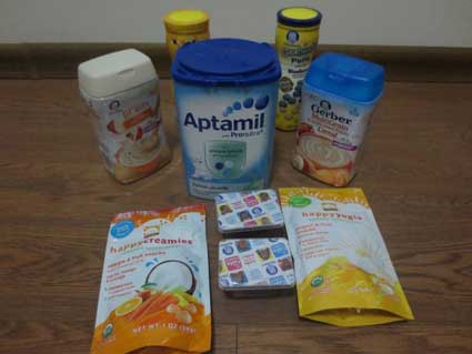 圖二:市民王大媽向記者展示自己兒媳海淘的洋貨,奶粉、果泥、零食、米粉等