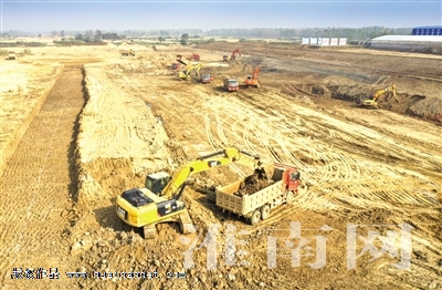 10月17日,“引江濟淮”江淮溝通段J010-2標工地機器轟鳴,施工車輛往返穿梭一片忙碌。該標段位于我市壽縣境內,總長46.758公里,工期42個月,2018年9月份進場至今已完成工程35%左右。“引江濟淮”是我省基礎設施建設標志性“一號工程”,被譽為安徽的南水北調工程。目前81個項目已累計開工51個,完工1項,控制性節點工程全面開工建設。(記者 倪軍 陳海濤)