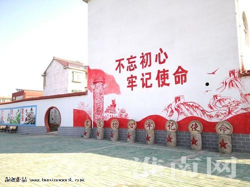 沿著主路走下去,偌大的廣場(chǎng)映入眼簾,一個(gè)氣派的舞臺(tái)在廣場(chǎng)左側(cè),上面寫(xiě)著五個(gè)大字“百姓大舞臺(tái)”,逢年過(guò)節(jié)時(shí),這里會(huì)為大家奉上多臺(tái)豐富精彩的演出,平日里,村民也可以在這里娛樂(lè)休閑。迎面的一整面墻上,用文字和色彩鮮艷的圖畫(huà)表現(xiàn)了社會(huì)主義核心價(jià)值觀的內(nèi)容,以“孝、德、禮”和“不忘初心 牢記使命”為內(nèi)容的彩繪文化墻更是充滿了正能量。