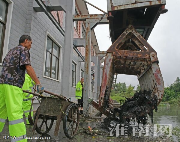 圖四:曹咀泵站工人正在對前池清淤