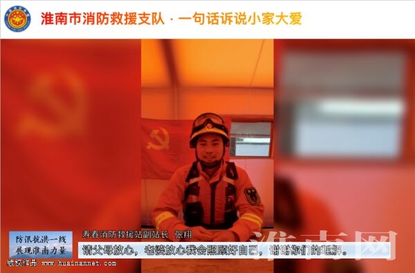 親屬思念,一句話訴說小家大愛。隨著防汛進入戰時狀態,支隊全體指戰員舍小家為大家,積極響應支隊歸建命令歸隊參與執勤,奔赴抗洪防汛的最前線,盡顯淮南消防人的初心與本色。為緩解親屬的擔憂,讓家人放寬心,支隊組織一線指戰員利用救援間隙視頻連線自己的家人,互問一聲平安,互道一聲加油!