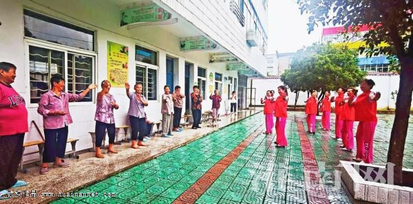 圖:為確保轉移安置的受災群眾基本生活有質量,謝家集區志愿者服務隊赴望峰崗鎮二道河村災民集中安置點,持續開展理發、文藝表演、廣場舞、益智游戲等形式多樣的志愿服務活動,幫助受災群眾樹立信心,戰勝洪魔。圖為區廣場舞協會的志愿者正在帶領安置點的群眾跳廣場舞。 (通訊員 衛 星 秦 龍 記者 蘇 強)