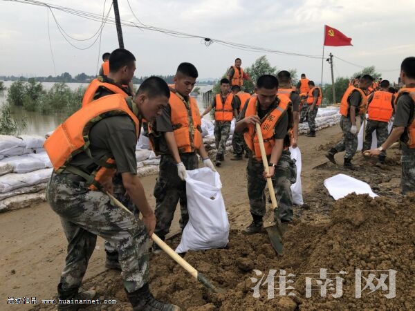 圖:田家庵區安成鎮石頭埠村保莊圩長320米,守護著全村900戶2000多名群眾的生命財產安全。近日,由于淮河洪峰過境,上漲的水位隨時可能漫過圩堤,當地黨員群眾已經在堤上連續奮戰了40多個小時。得知這一情況,東部戰區第71集團軍某部300名官兵緊急馳援,和村民一起加固堤壩。(記者 李東華 通訊員 吳喆敏)