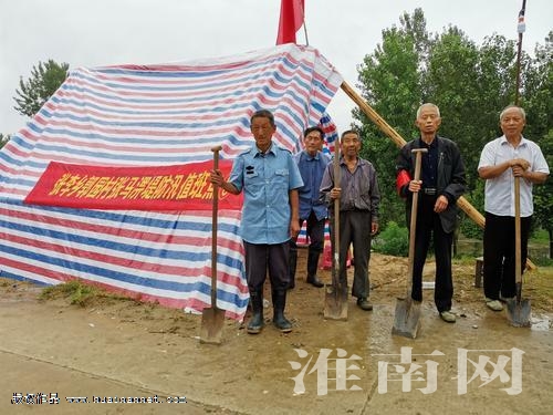 圖:淠河大堤上幾位老年人正在駐守巡防