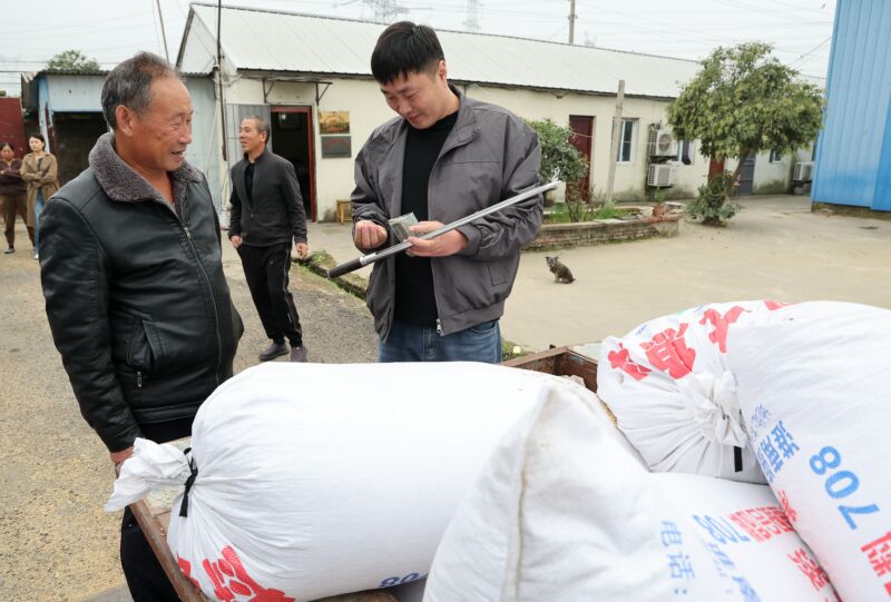10月13日,淮南市永超工貿公司對附近農戶的秋糧進行及時收購。 (記者 張越 攝)