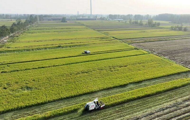 10月11日,鳳臺縣朱馬店鎮徐橋村種糧大戶在搶收水稻。 (通訊員 李巧玲 攝)
