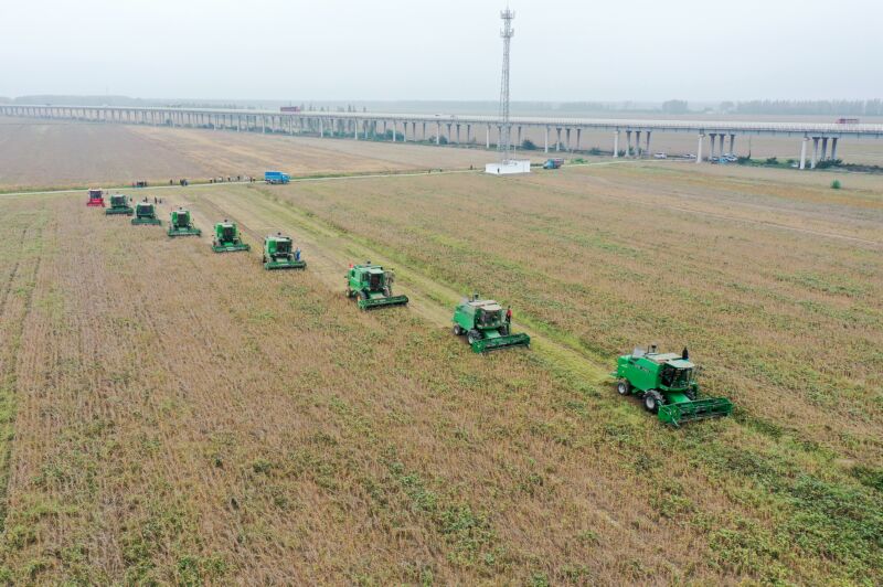10月8日,淮南農場組織機械搶收高粱。(記者 陳彬 攝)