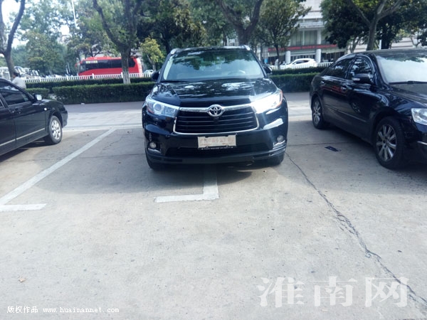 近日,在洞山中路與賓館路相交處的停車場,這輛小轎車司機沒有將車按規定停在線內。 (記者)
