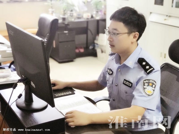 “小磊是我們交警支隊(duì)交管科的一名年輕民警,他全名叫黃曉磊,是2017年度全市公安機(jī)關(guān)崗位標(biāo)兵”,8月15日,市交警支隊(duì)宣教科負(fù)責(zé)人帶著淮河早報(bào)、淮南網(wǎng)記者走進(jìn)交管科辦公室,指著一位正在電腦前埋頭打字的帥氣民警說:“這位就是黃曉磊。”