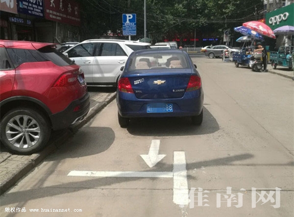 為規(guī)范車輛有序停放,相關(guān)部門在一些路段重新施劃了一批停車位,并標(biāo)示出停放方向。不過一些車輛卻并沒有按照指示方向有序停放。圖為8月22日上午,在田區(qū)十六小南邊的一條道路上,一輛機(jī)動(dòng)車逆向停放在停車位上。(記者)
